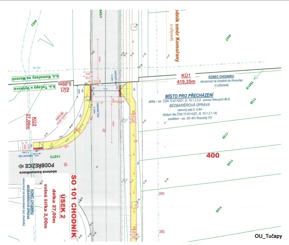 Tuto akci koordinujeme společně s obcí Komořany, čímž by vzniknul chodník Tučapy - Komořany s místem pro přecházení na rozhraní katastrů obou obcí na obslužnou silnici směrem do Podbřežic.